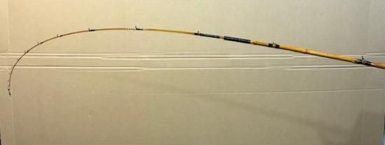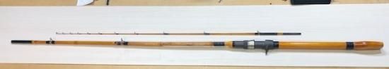 ガイドは、CMNST〜KT〜KWを使用。トリガー付きパイプシート仕様です。丸節竹とソリッドグラス、桧グリップを使用しています。錘負荷は30〜60号。