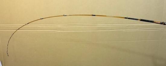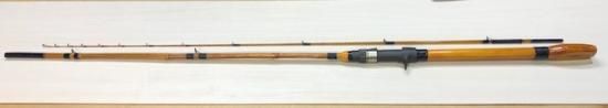 ガイドは、CMNST〜KT〜KWを使用。トリガー付きパイプシート仕様です。丸節竹とソリッドグラス、桧グリップを使用しています。錘負荷は30〜60号。